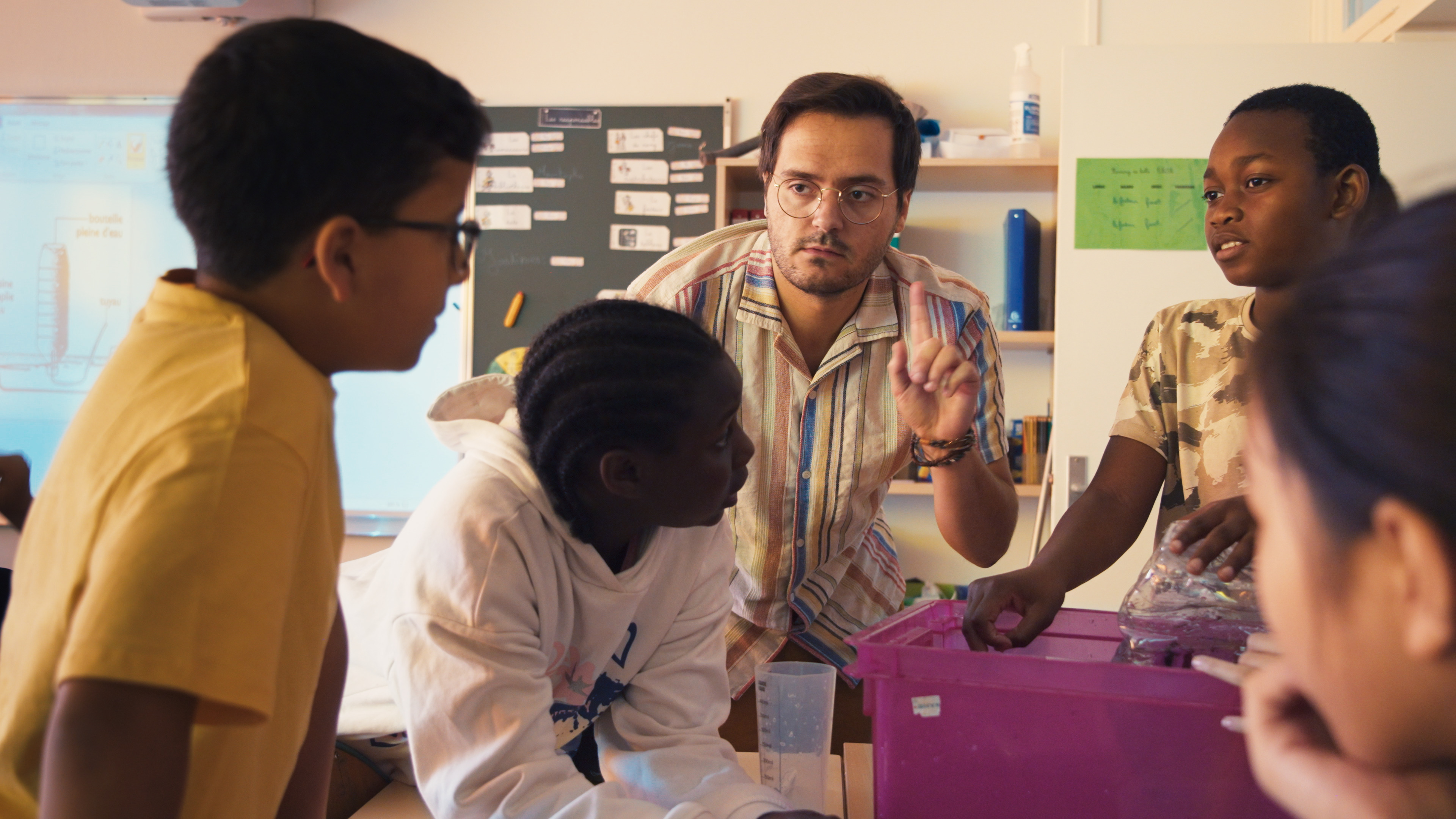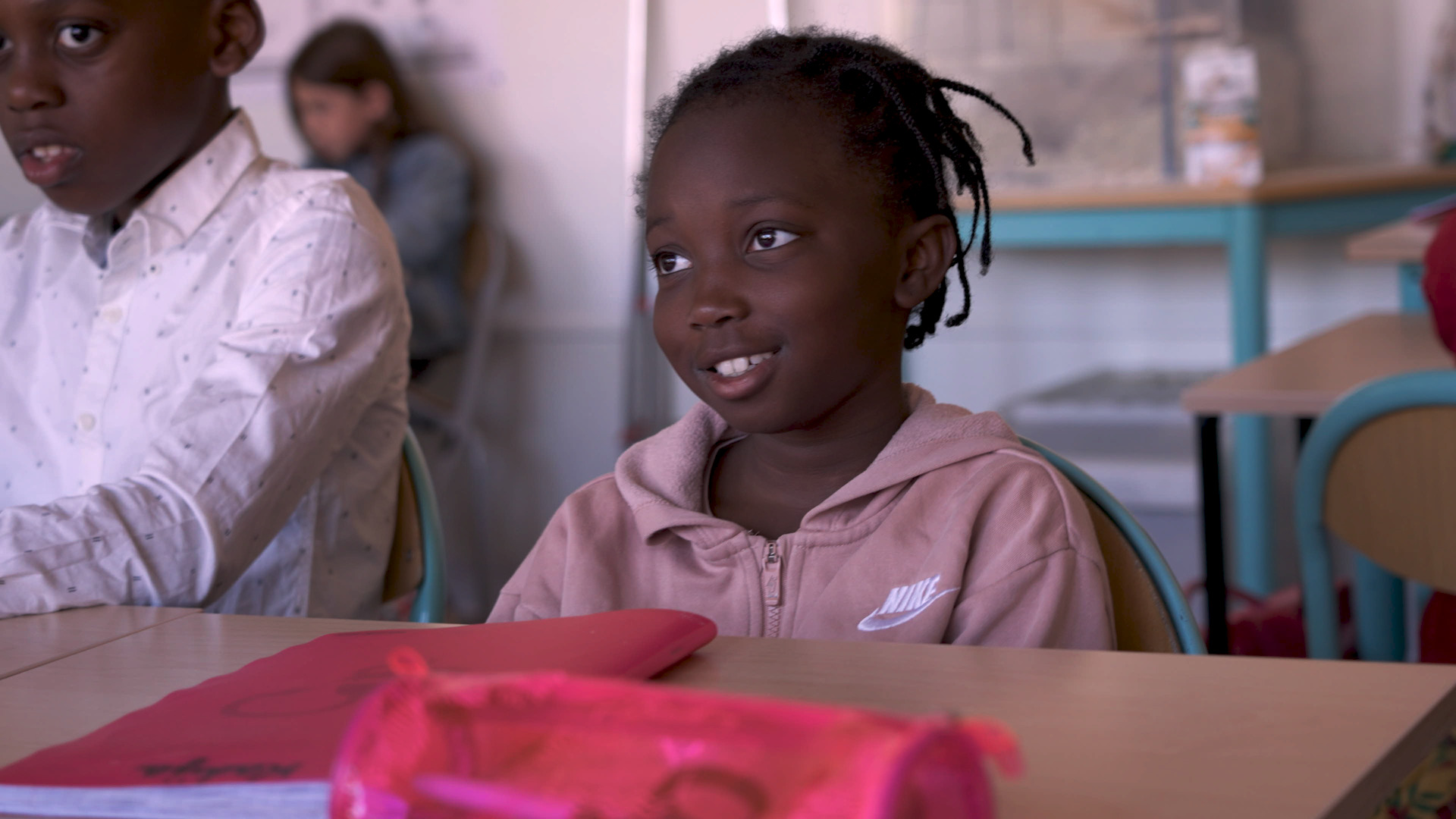 Apprendre, lever le doigt, avoir envie que la maîtresse nous dise : c’est bien ! Apprendre aux enfants, détecter ce qui coince, les encourager. Les faire lire, chanter, apprendre à se parler plutôt que de se battre. Cela se passe dans une école élémentaire, en banlieue parisienne.
