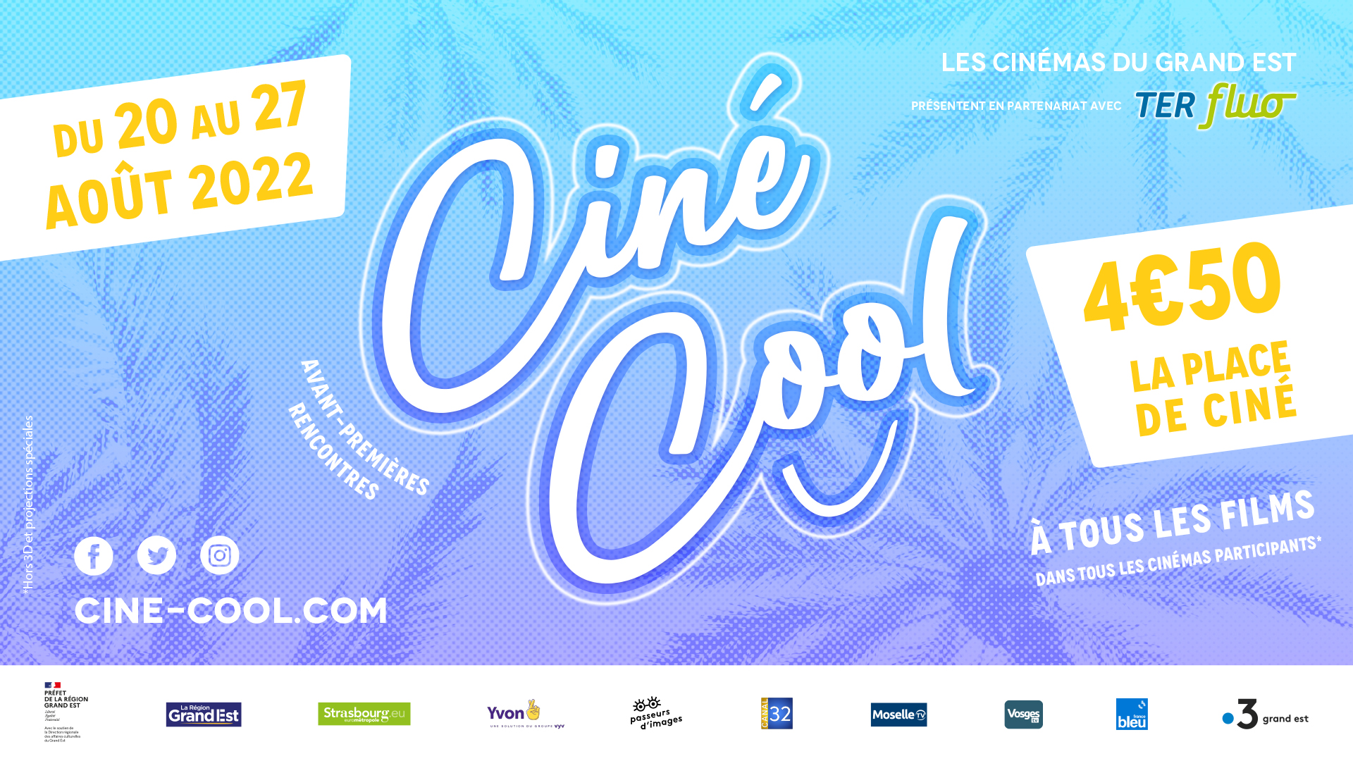Initié par les Syndicats de Directeurs de Cinémas de l’Est, avec la participation de l’Association des Cinémas Indépendants de l’Est et le soutien de la Direction Régionale des Affaires Culturelles et de la Région Grand Est, Ciné Cool est le temps fort cinématographique de l’été en Alsace, Lorraine et Champagne-Ardenne.