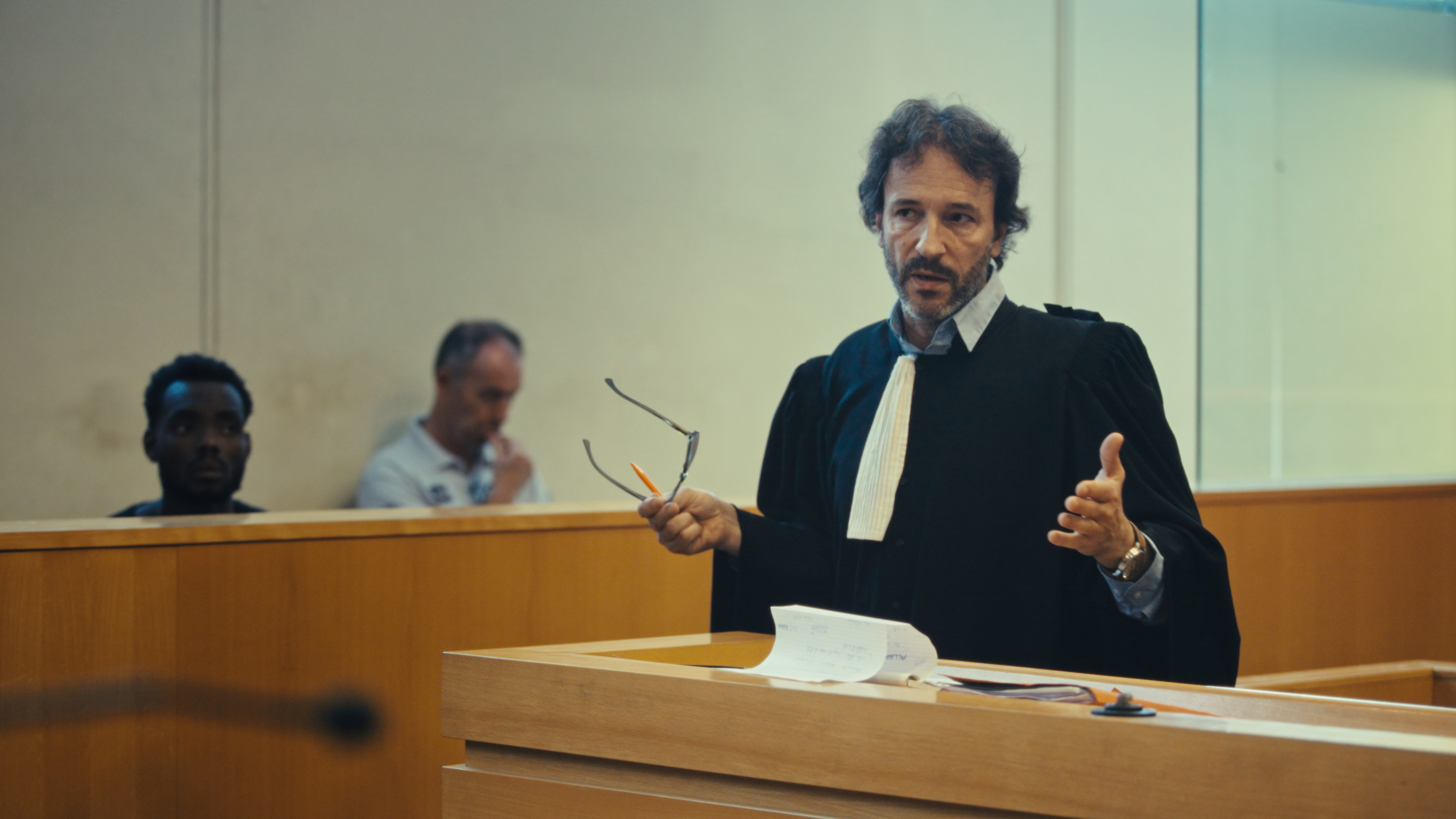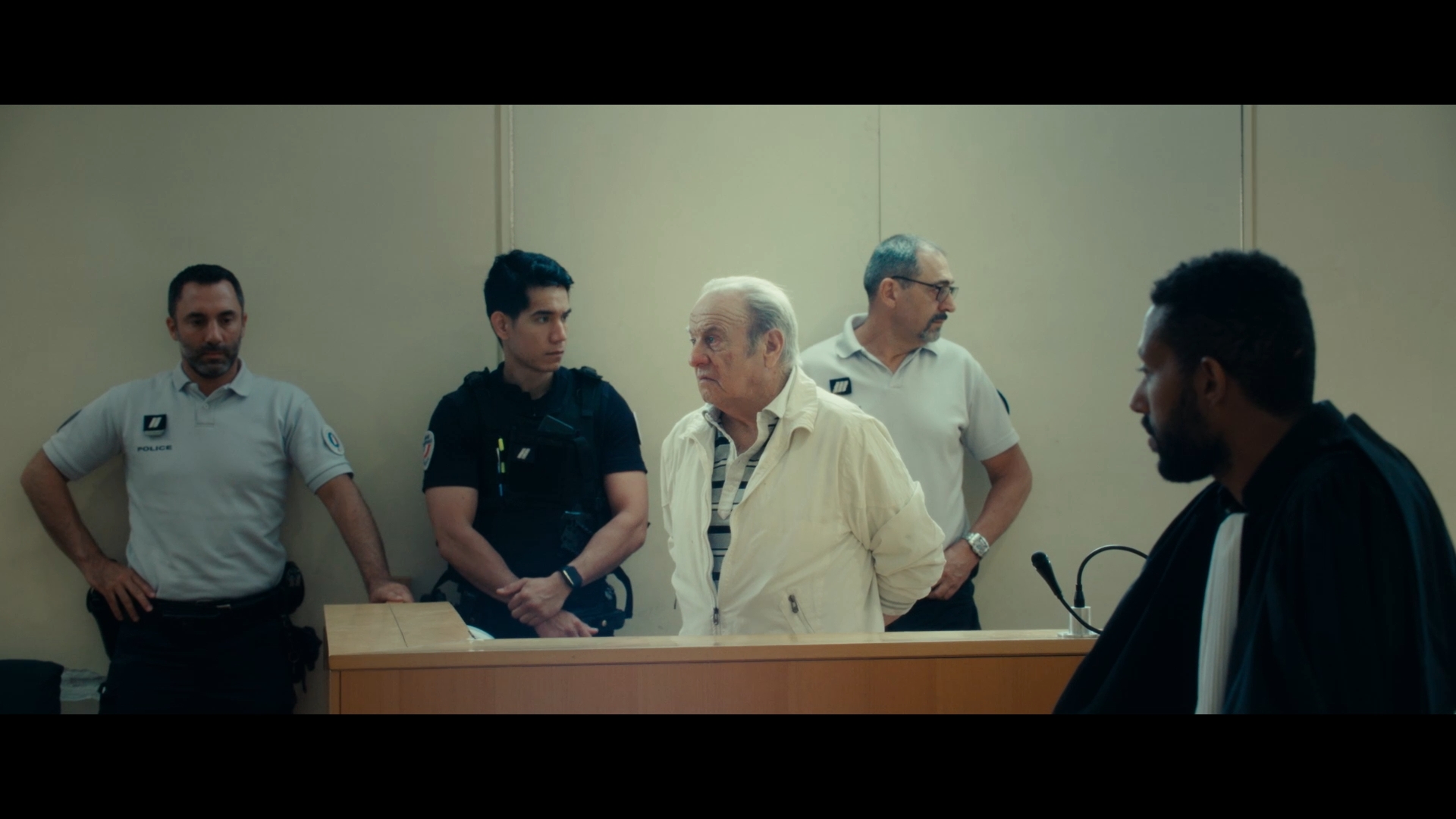 Une grande porte en métal qui coulisse pour laisser entrer les fourgons de la Police. Des hommes en sortent, avec leurs histoires. Des murs, des geôles, des escaliers en pierre, des salles d’audience, des coulisses, des larmes, des cris, des regards. Le tribunal de Marseille est débordé par les affaires de stupéfiants. Ceux qui sont jugés là sont les gérants d’une économie du chaos. Ce sont aussi les petits travailleurs du shit, des enfants qui ont grandi seuls. En contrebas, le port, au loin, les quartiers périphériques, la ville bouillante, remplie de ses blessures. De ses beautés aussi.