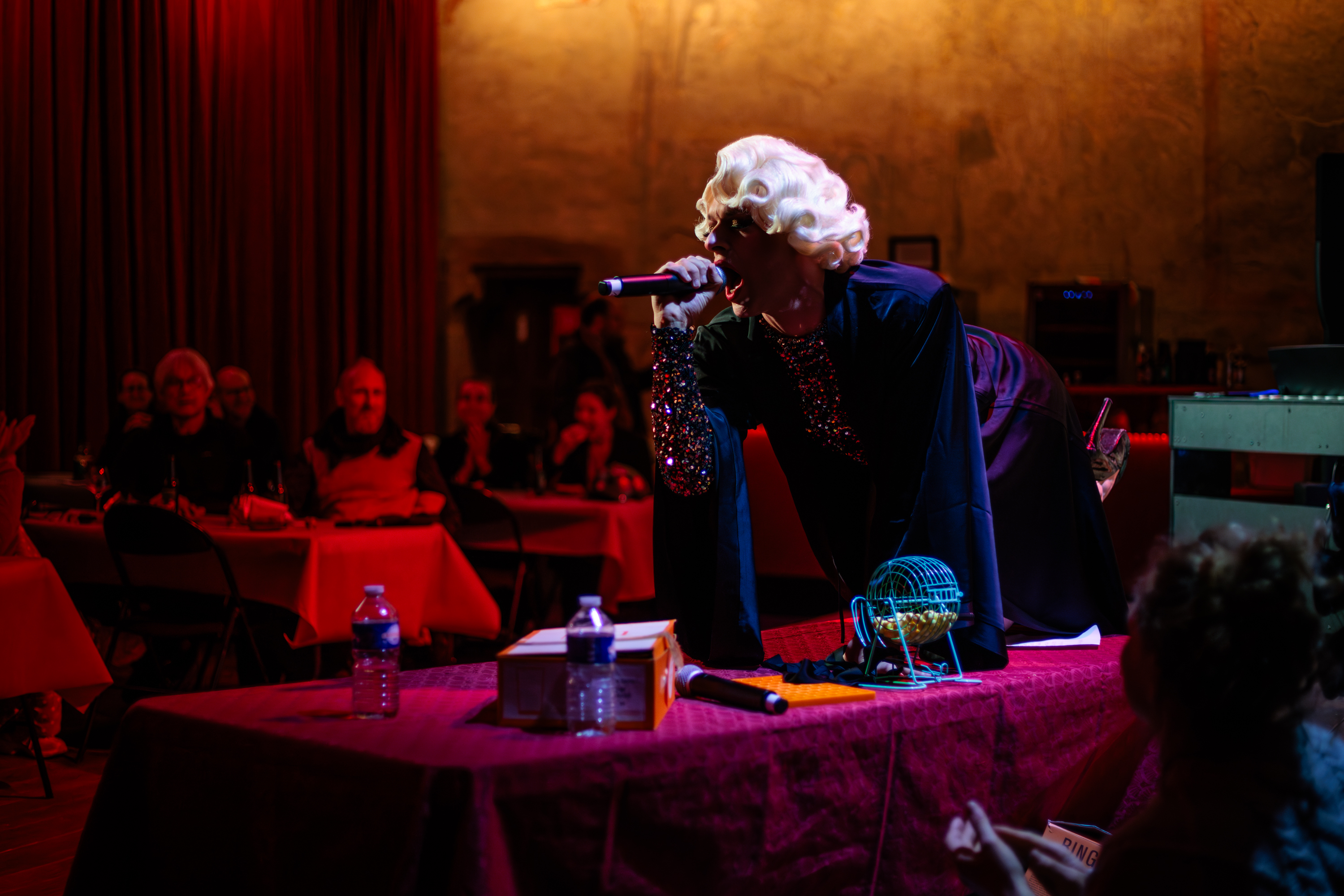 Oubliez l’image un peu poussiéreuse du loto du dimanche : avec Fürsy von Colmar, le bingo devient un véritable numéro de cabaret ! Ici, les cartons s’agitent, les boules s’envolent, les chansons surgissent sans prévenir et l’humour flirte joyeusement avec l’absurde. On rit, on chante, on s’émeut aussi… et, bien sûr, on joue pour gagner. Car dans ce bingo-là, le plaisir est partout — et les surprises aussi. (Presque) tout le monde repartira avec son petit trophée !
