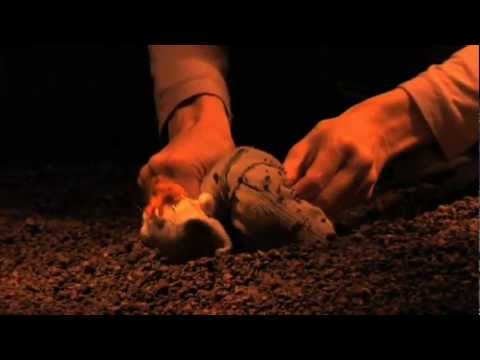 Installé au bord du plateau, dans une arène circulaire, sorte de petit cirque miniature, le public découvre une scène déserte, recouverte de terre et parsemée de fragiles constructions de bois. Rien ne bouge… Puis, quelque chose s’agite, là sous la terre…